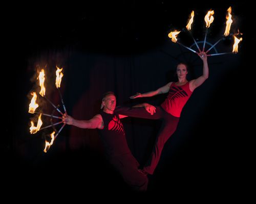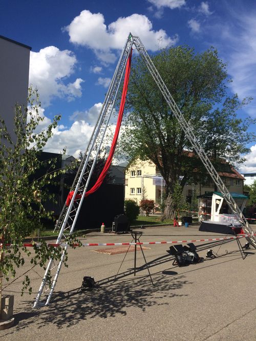 Bereits Monate im Voraus begann die Planung. Ziel war es, eine Show zu entwickeln, die auch bei Tageslicht ihre volle Wirkung entfaltet – eindrucksvoll, sicher und emotional. Mit meinem Team aus Feuerkünstlern, Akrobaten und Luftartistinnen passten wir die Show sorgfältig an die Gegebenheiten an. Das neun Meter hohe Traversen-Gerüst für die Luftakrobatik wurde zum Blickfang des Abends, während die Feuerjonglage und Partnerakrobatik die Bühne mit Energie und Ausdruck füllten.