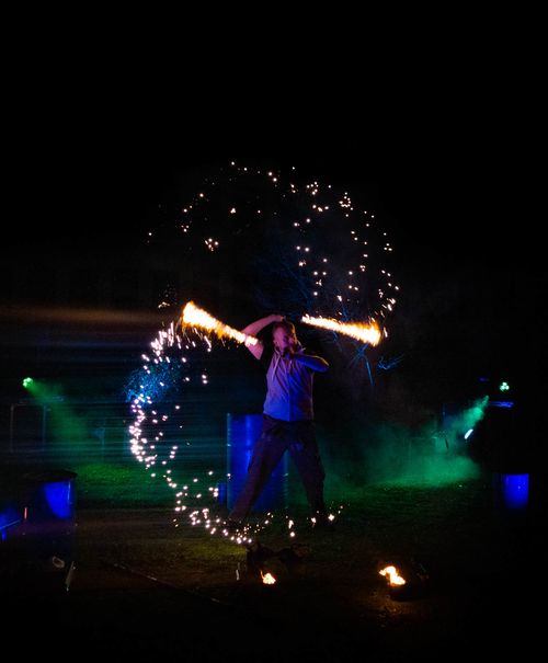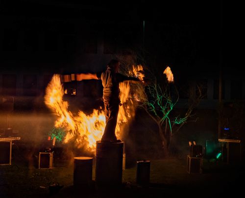 Ich hatte die Freude, die Weihnachtsfeier eines mittelständischen Unternehmens im Rhein-Main-Gebiet mit meinen Shows Light Up und Industrial Fire zu bereichern. Zwischen festlich geschmückten Buden und brennenden Feuerschalen entstand eine lebendige Bühne unter freiem Himmel. Trotz wechselhaften Wetters ließen sich die Gäste von Licht, Feuer und Funkenregen in den Bann ziehen.