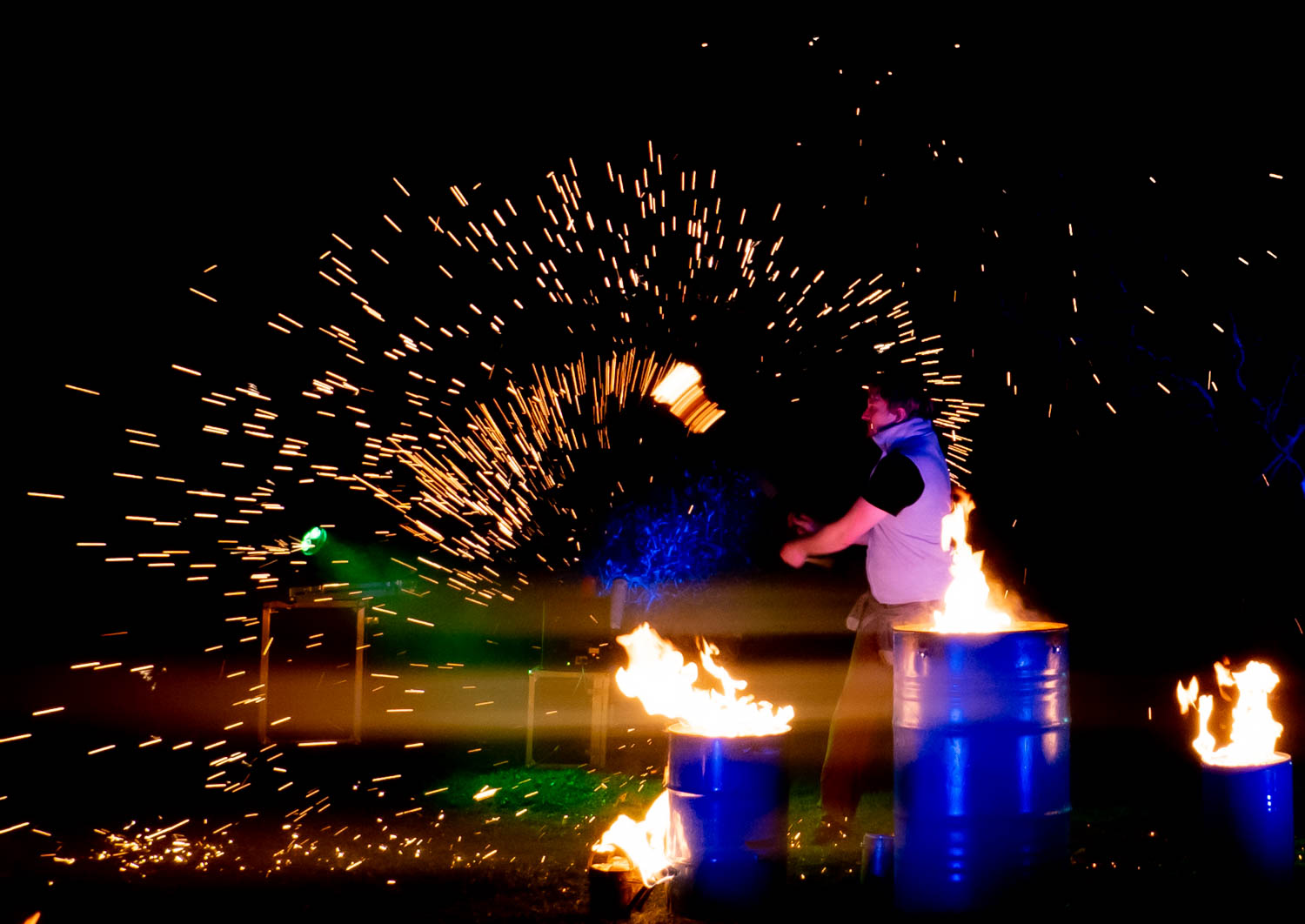 Die Light Up-Performance setzte das Firmenlogo eindrucksvoll in Szene. Jubel und begeisterte Reaktionen begleiteten jeden Moment. Bei der Feuershow Industrial Fire brannten die Fässer und flogen die Funken. Die Verbindung von Licht, Klang und Bewegung erzeugte intensive, emotionale Momente für das Publikum.