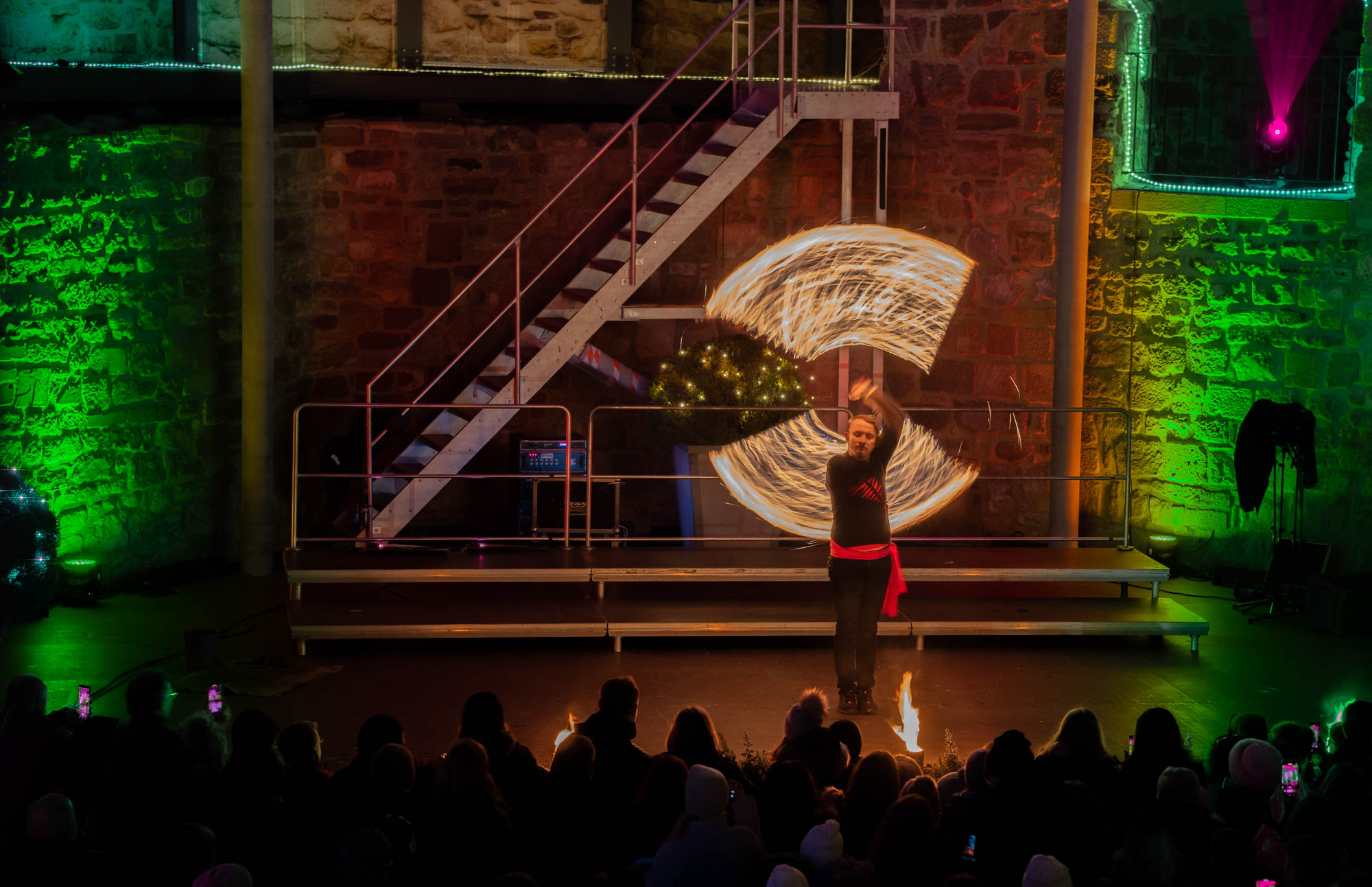 Ich hatte die Freude, den Weihnachtsmarkt in Bad Vilbel auf der historischen Wasserburg mit meiner Classic Fire Show zu bereichern. Auf der Bühne entstand ein Spiel aus Licht, Flammen und Bewegung. Funken sprühten in die Nacht, während die Jonglage mit brennenden Fackeln die Zuschauer in Staunen versetzte. Die Kombination aus klassischer Feuershow und perfekt abgestimmten Flammeneffekten schuf eine festliche, emotionale Atmosphäre.